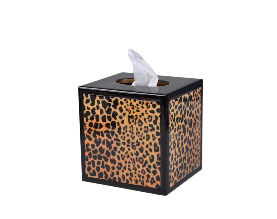 Animal prints, like the striking Leopard pattern, are a fashion staple that brings a bold and luxurious wildness to your bathroom interior, allowing you to add some daring attitude. Leopard with black enamel/Gold trim.