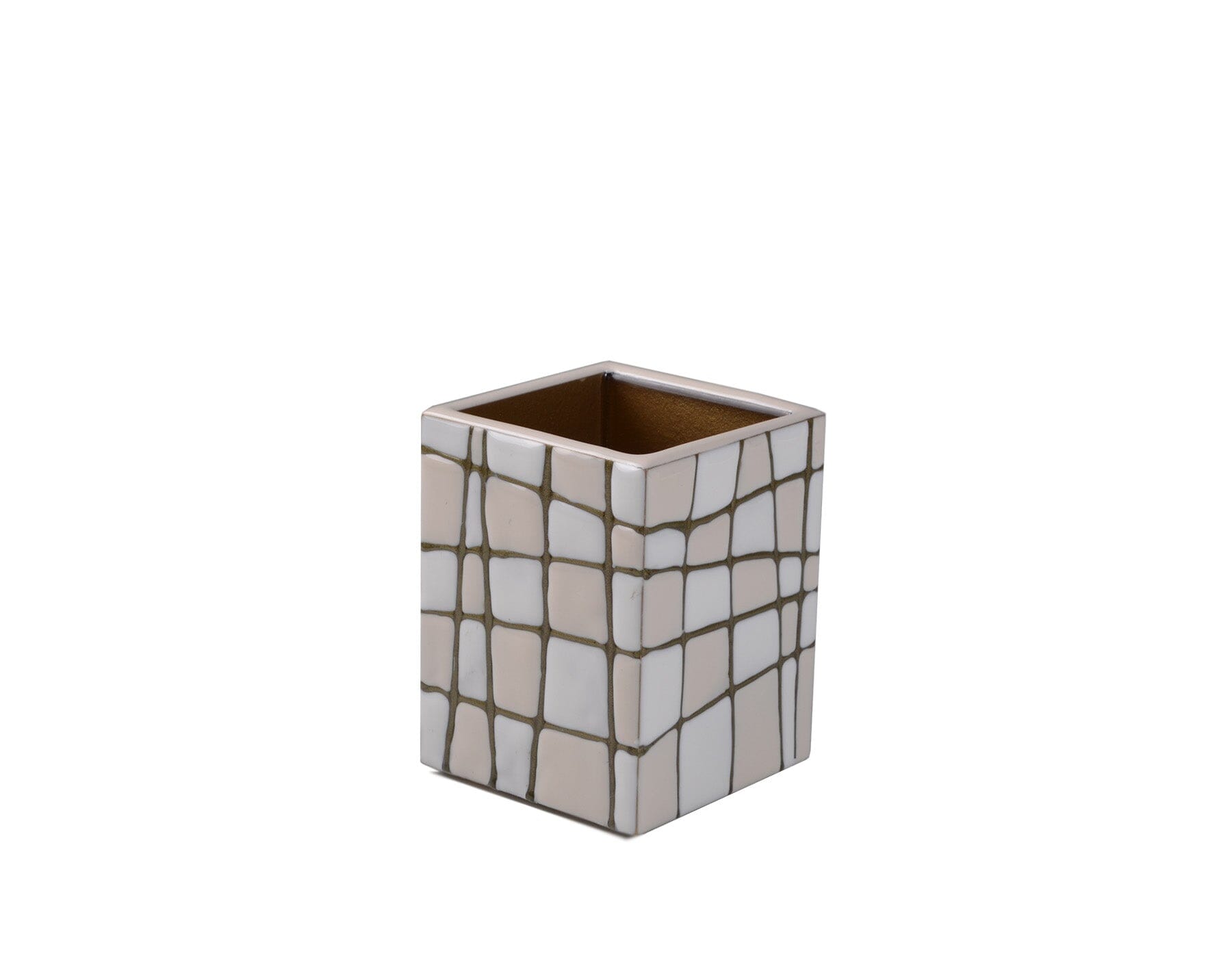 Enamel in an abstract check pattern. Options: Coffee/Bay Leaf/Gold, Fairy Dust Pink/Ballerina/Gold, Aruba/Ecru/Gold, Black/Pure/Silver, Jam/Lavender/Silver, Coffee/Mist/Silver