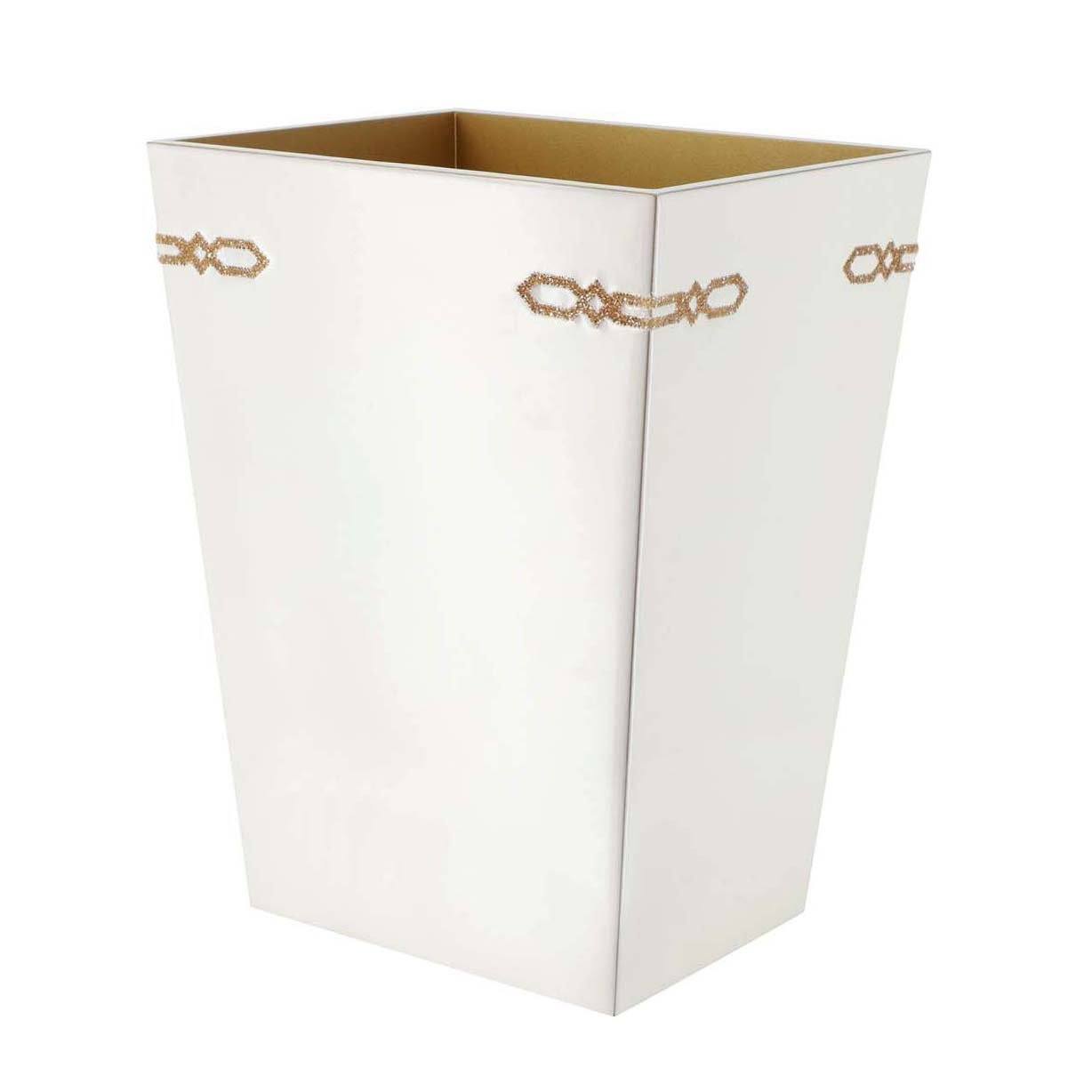 A luxurious wastebasket that brings brilliance to the bath suite.