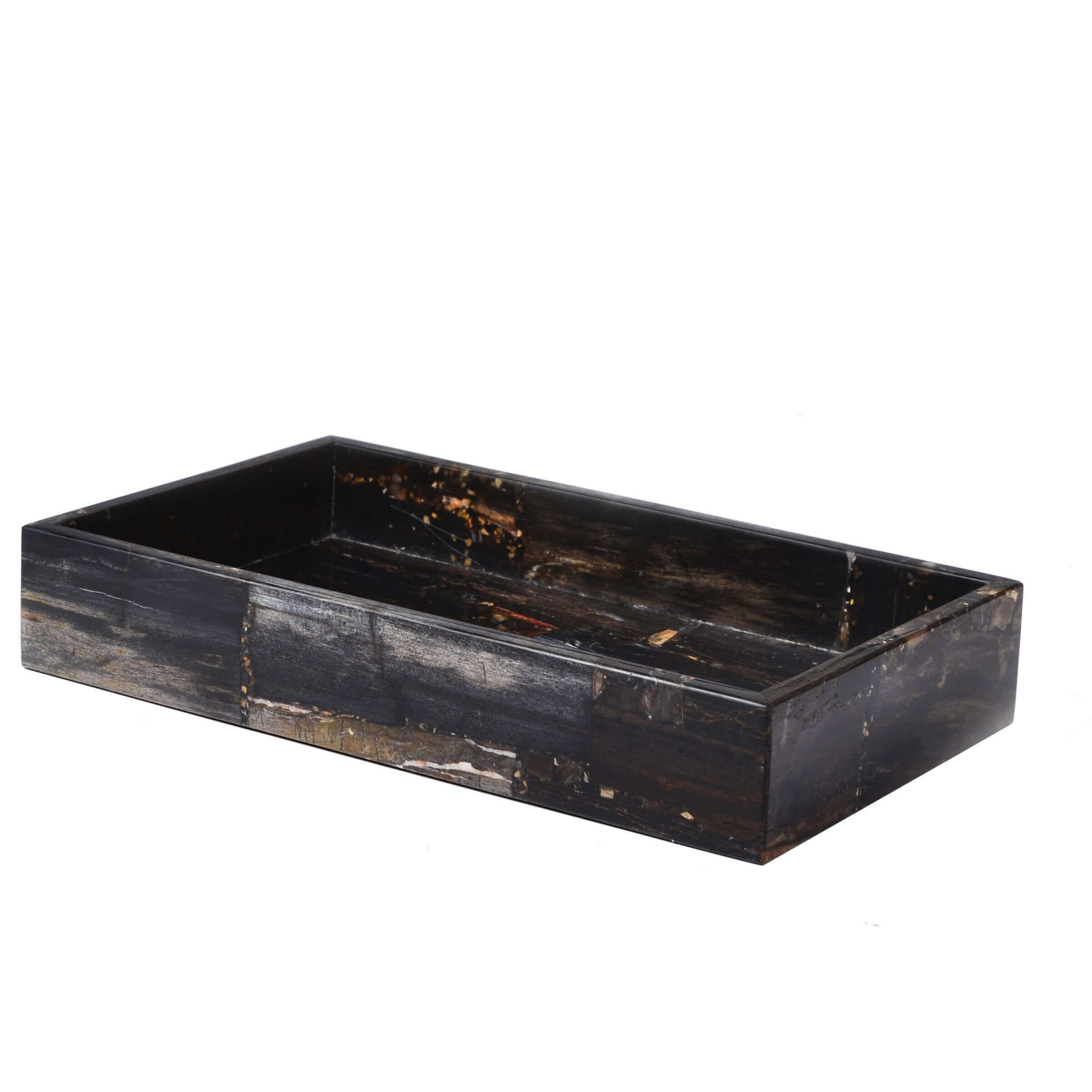A unique twist on the traditional petrified wood collection - retro wood is sliced on the vertical instead of horizontal and the individual pieces assembled end to end. It is distinguished by its rich black, charcoal, grey and brown hues.